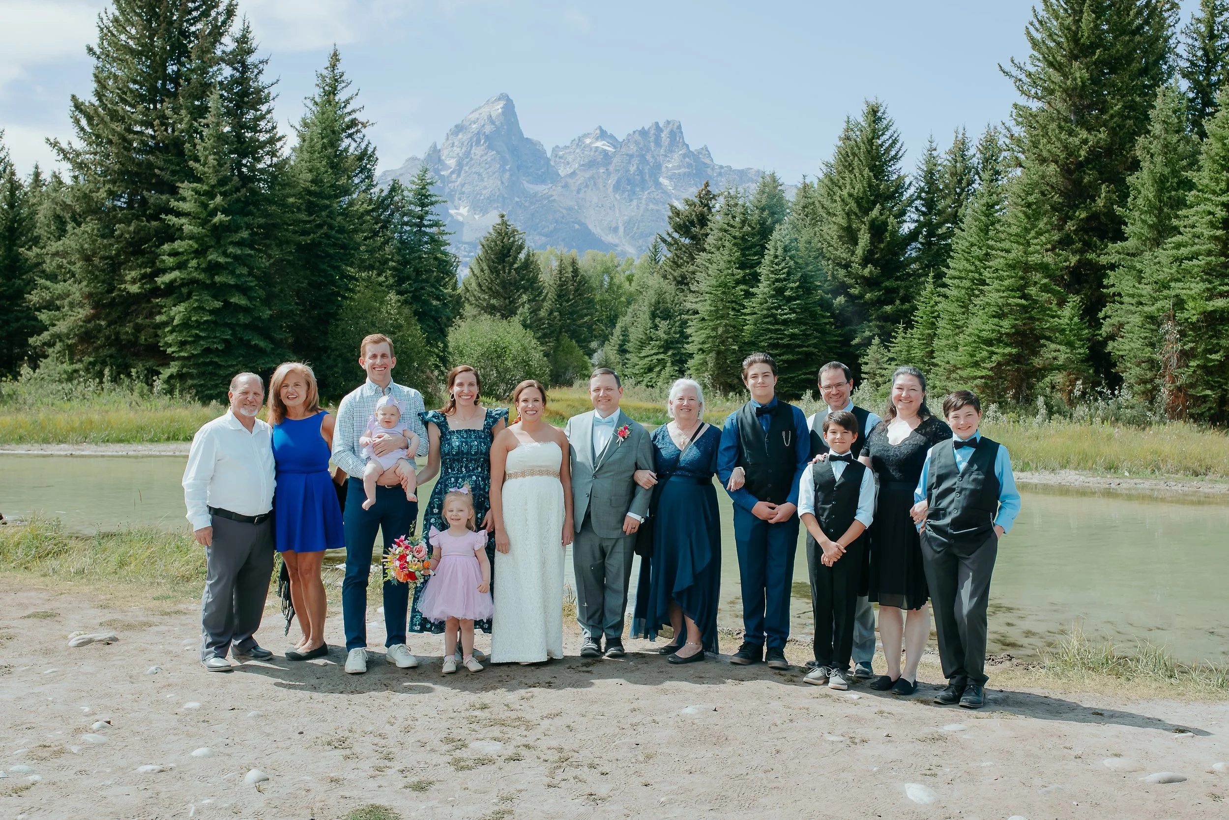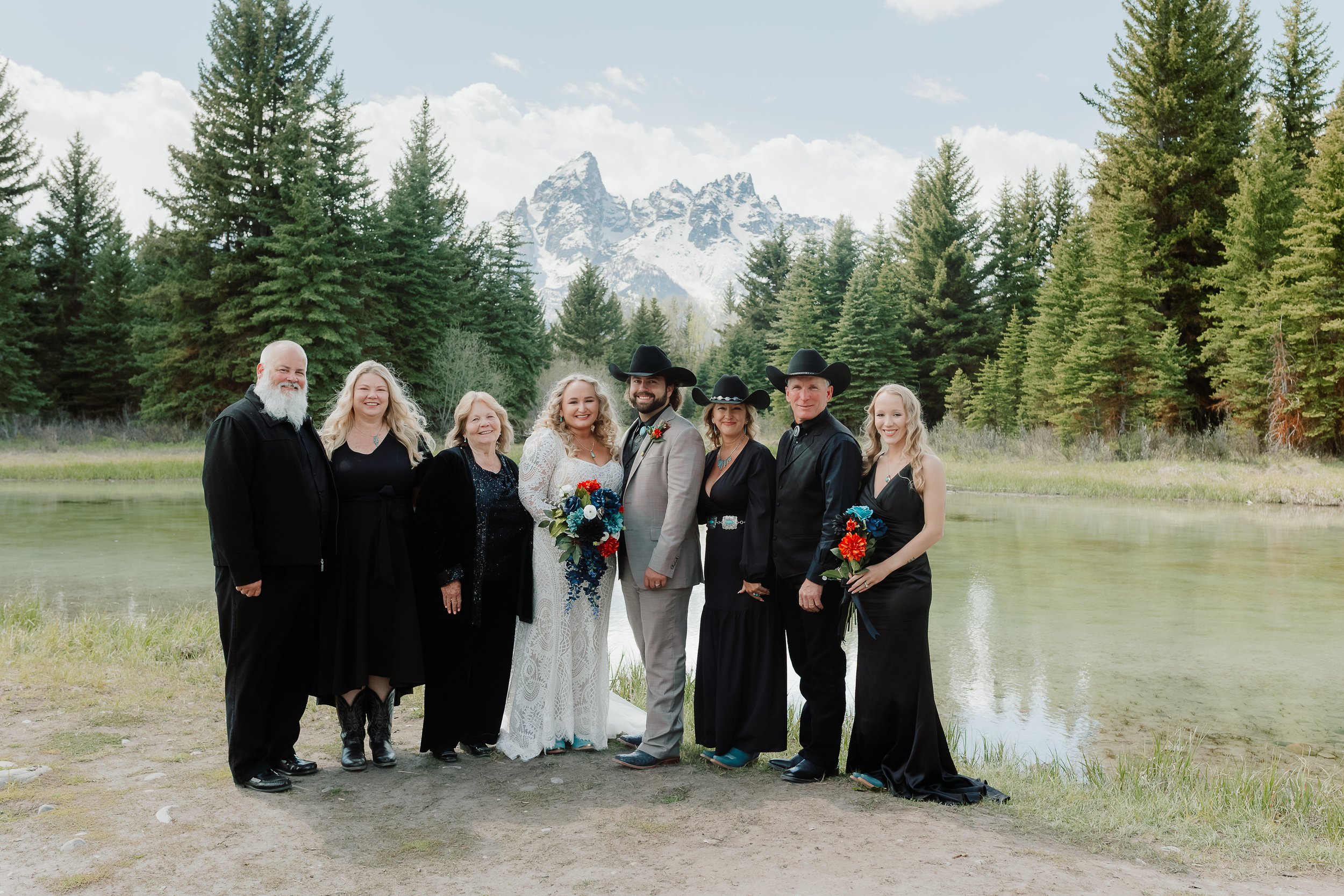 Bride and groom with bride’s extended family